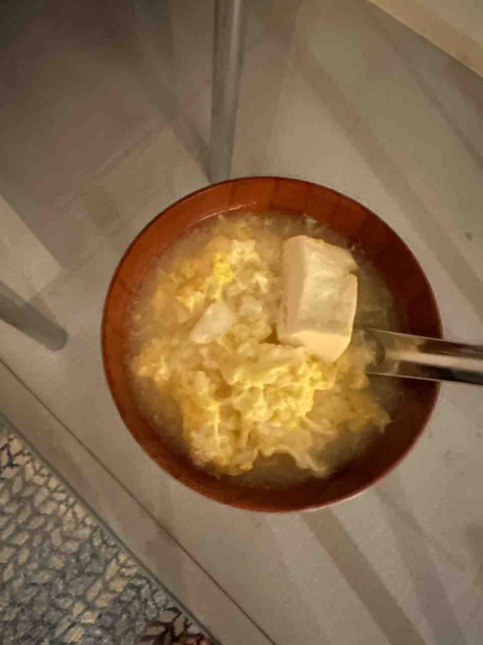 ご飯80gに、卵2個と豆腐を入れて。お椀に2〜3杯できました。