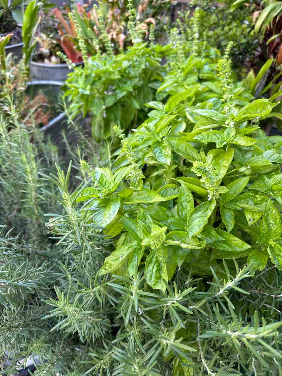 なんか久々に見たらバジルとローズマリーの林になっていた。シソの種は発芽せず。切ない。