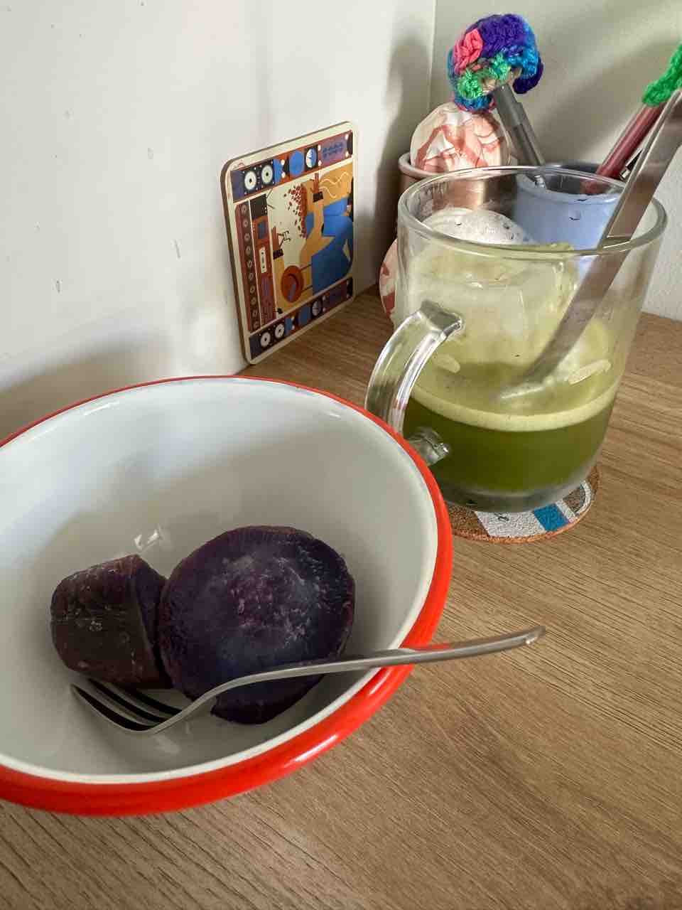 おやつに紫芋とアイス抹茶!