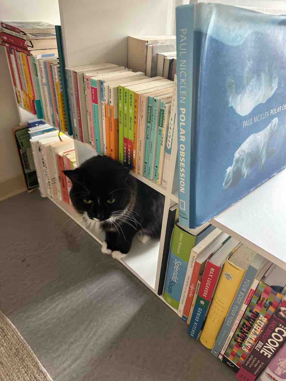 そのあとちょっと片付けをして本棚に猫スペースを作ったら