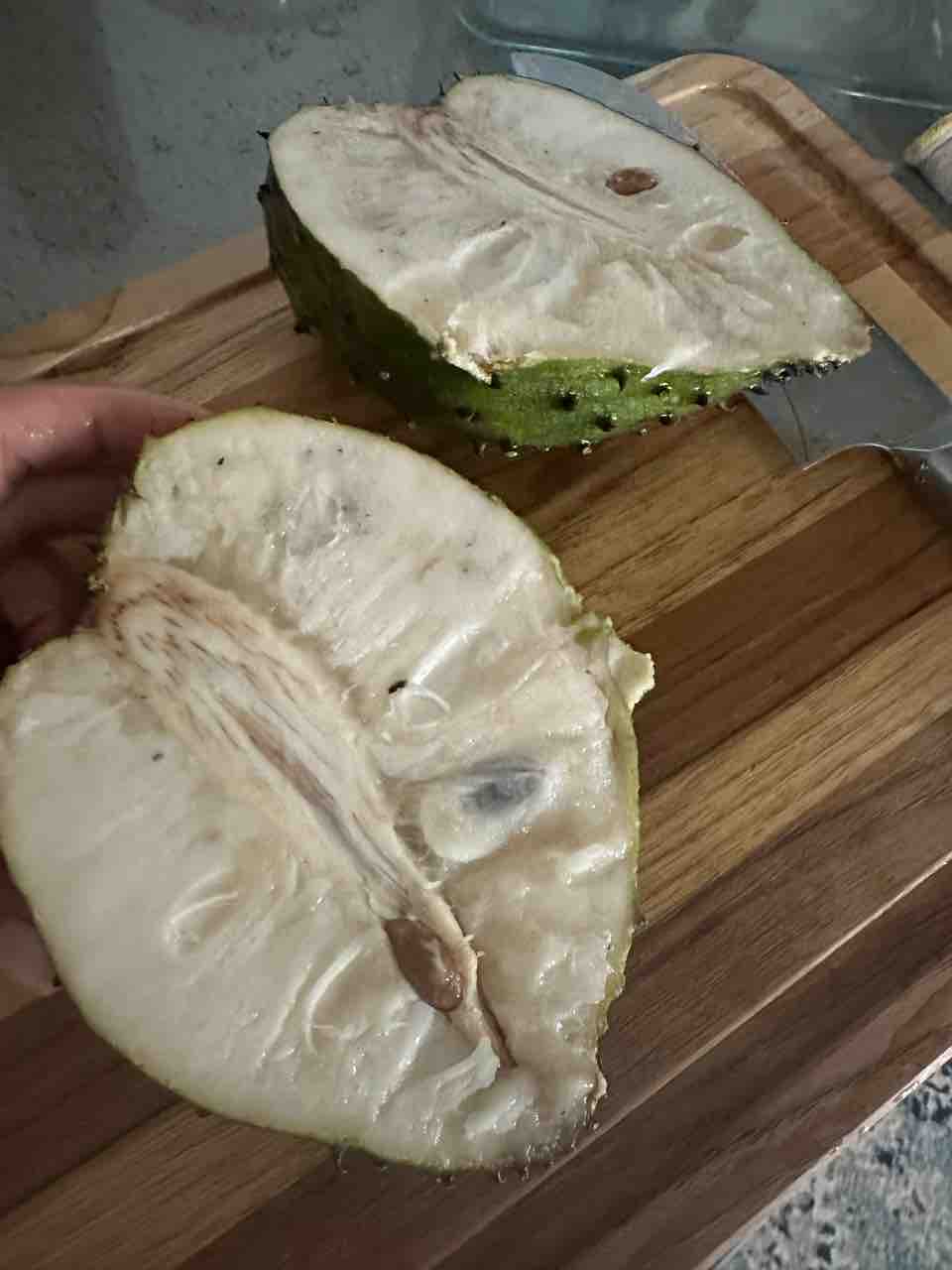 お初の果物、サワーサップ(サワーソップ、Soursop)をカット!