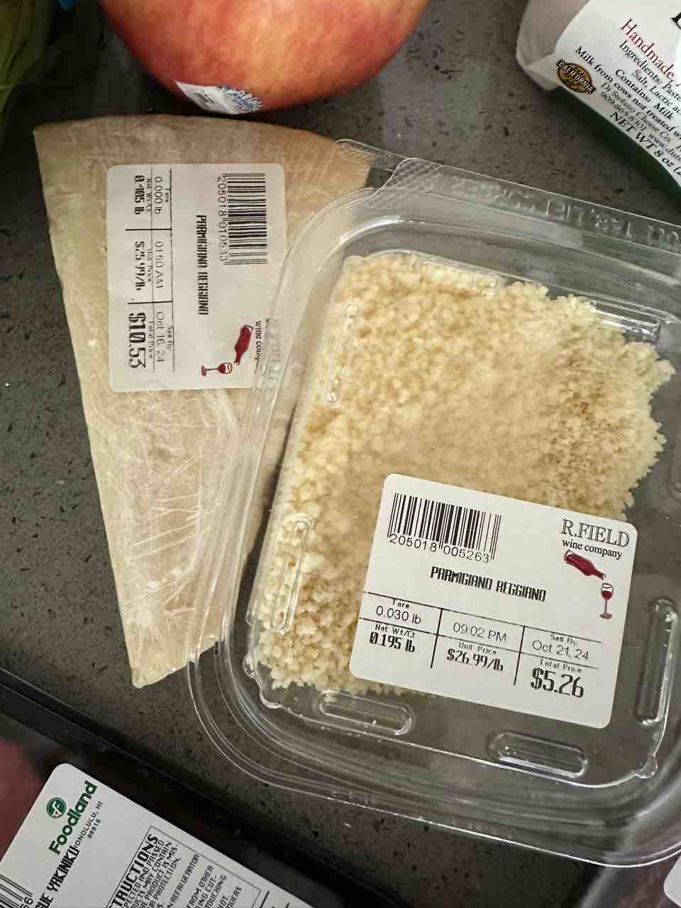 このパルミジャーノ、なんかサランラップと冷蔵庫の香りが移っていた😭
