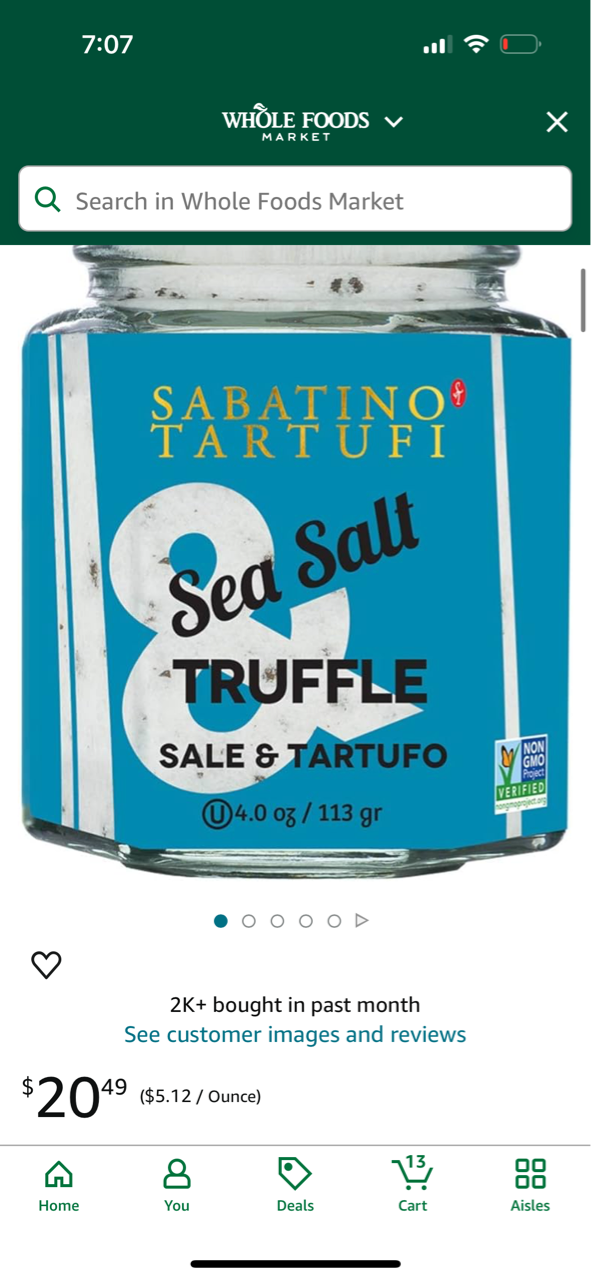 ホールフーズで買うと20.49ドルのトリュフソルト(私の愛用品です)