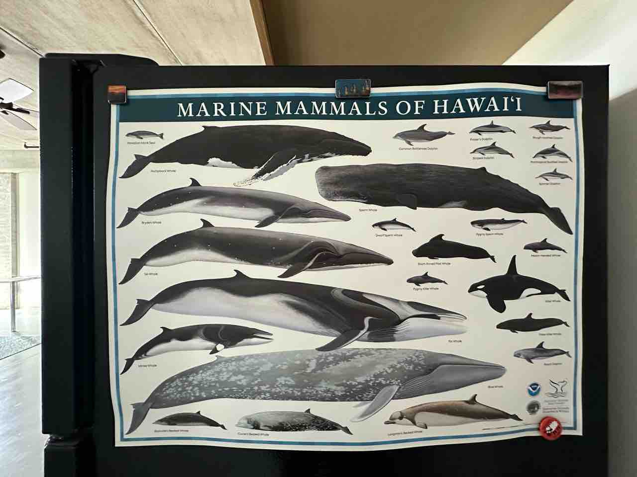 うちの冷蔵庫の横には、このポスター貼ってあるんだけど、遠くからだったからどのイルカか分からなかったな🐬