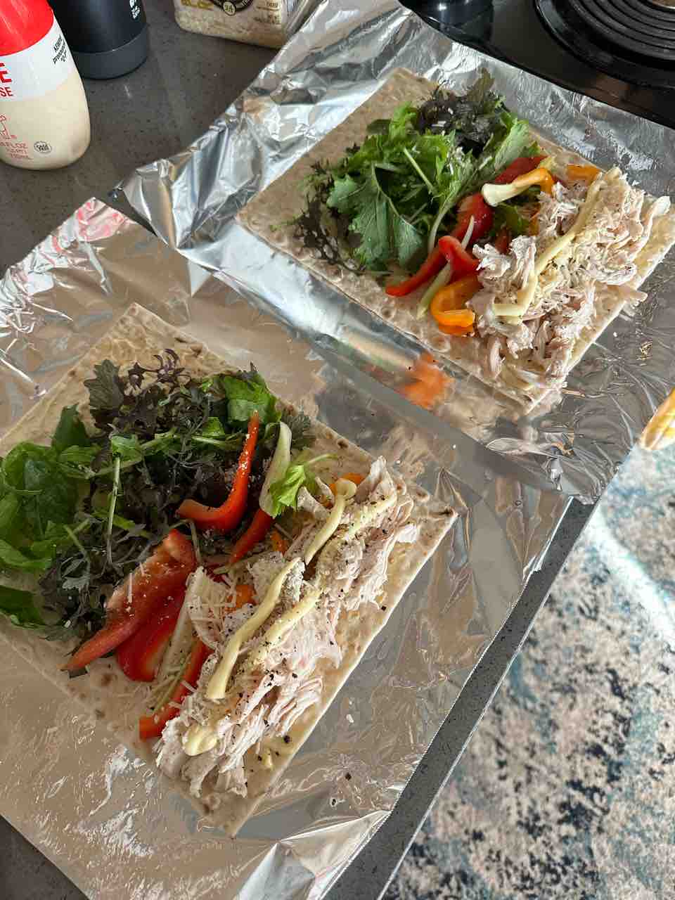 蒸し鶏に野菜たっぷり。マヨネーズかけて巻くだけ!