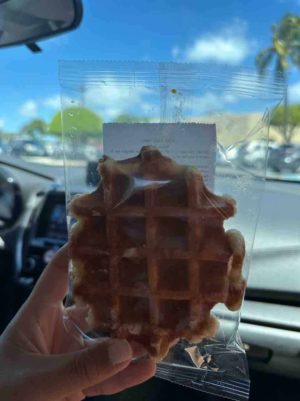 レジ横にあったワッフルを衝動買いして夫と半分こ。