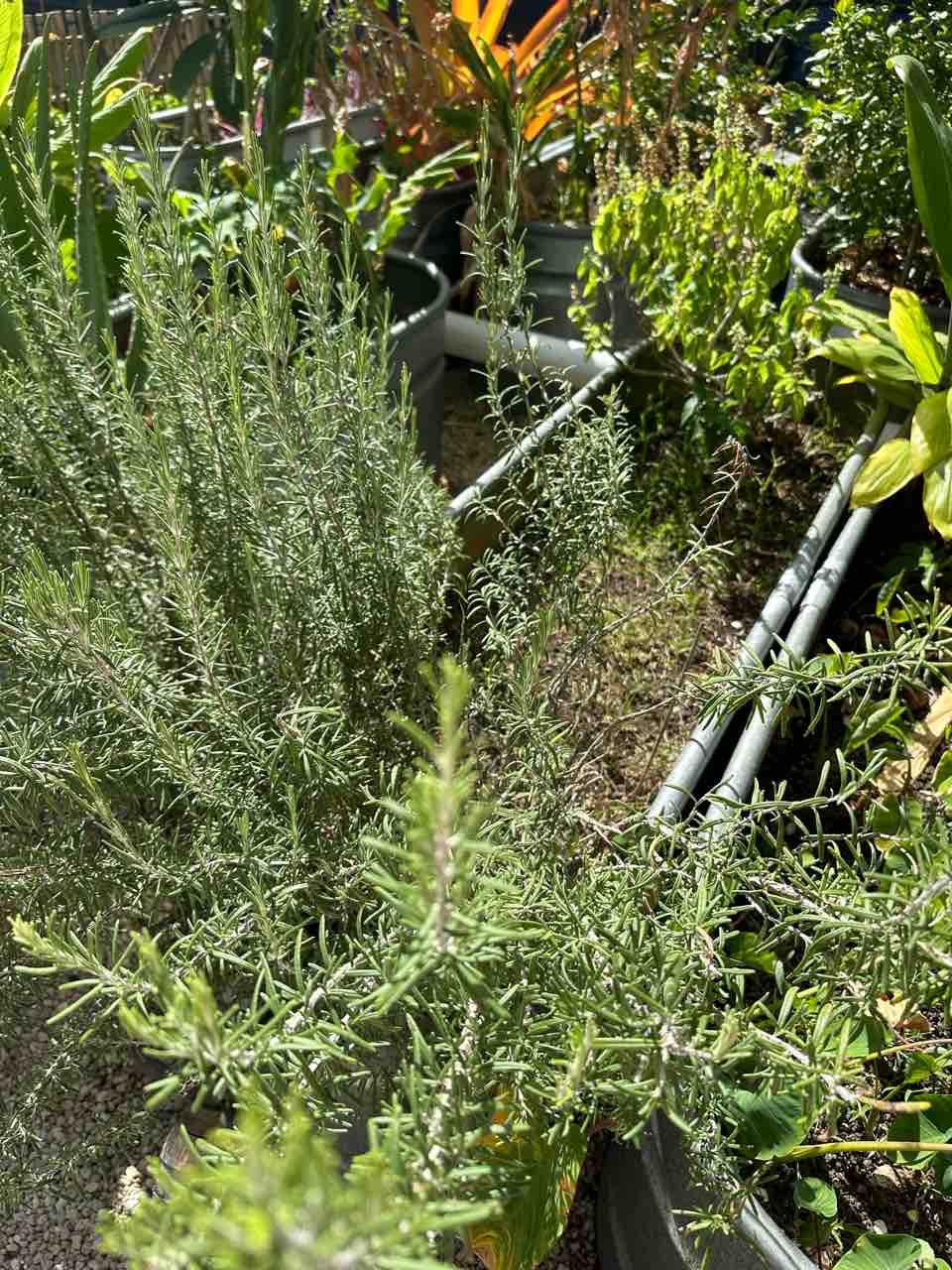 アパートのガーデンに降りて林になってるローズマリーを収穫して〜
