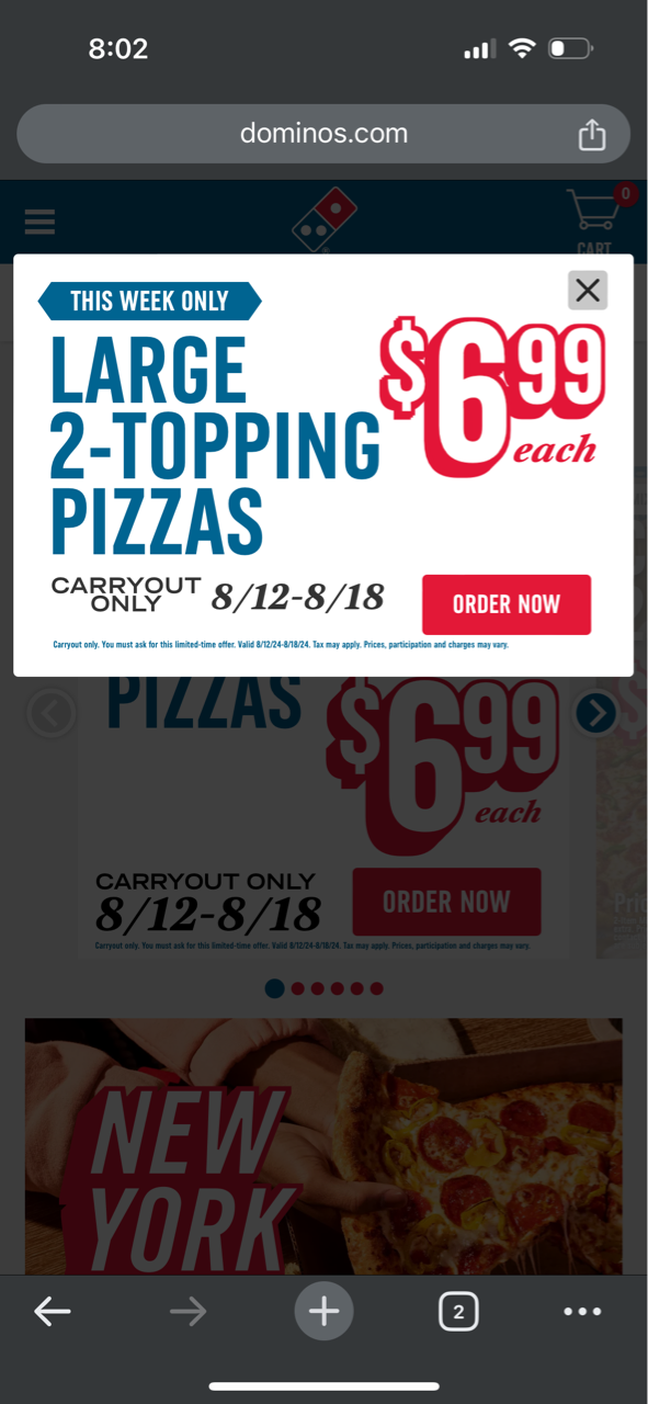 ドミノの持ち帰りピザが、たったの7ドルですってよ〜!