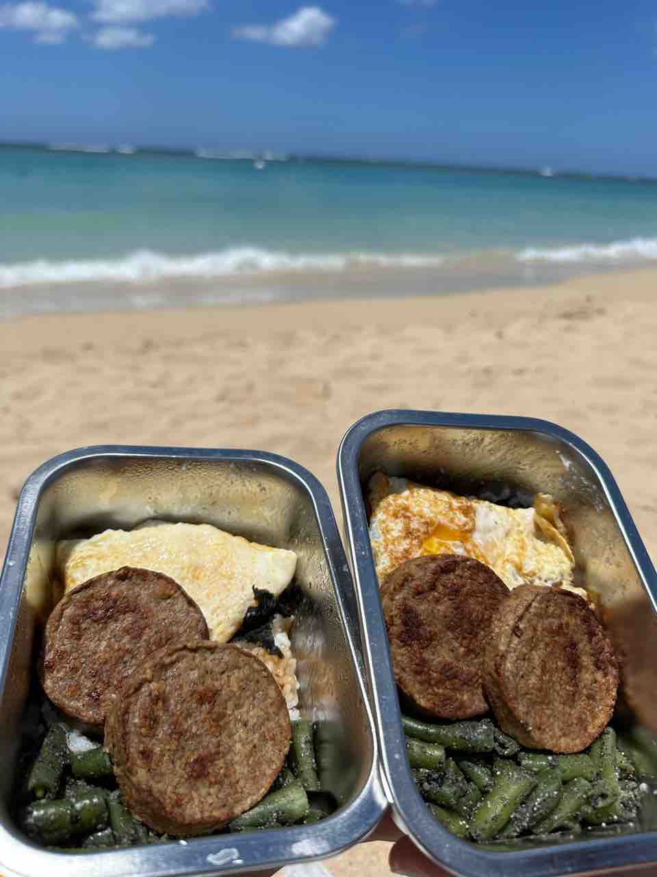 ハワイのお弁当といえば、白米に、卵と、スパムかポルチギーソーセージっていうイメージ…!