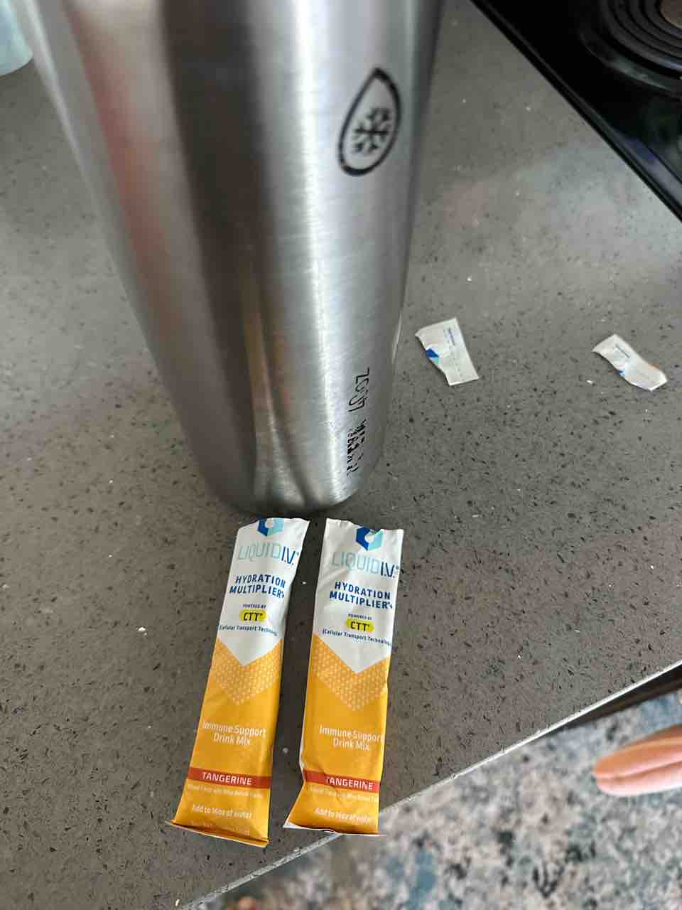 ビーチに行く飲み物にはLiquid IVっていうポカリの粉みたいなのを入れました。