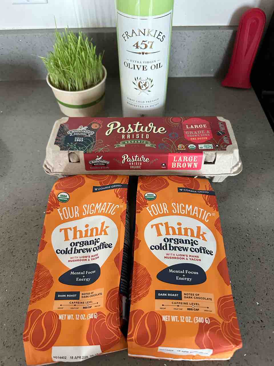 あとはパスチャーレイズドの卵(8ドル)と、キャッシュバックでBuy1Get1フリーのキノコ入りコーヒー豆。