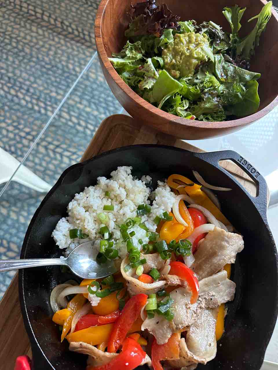 ディナーは豚肉と野菜炒め。