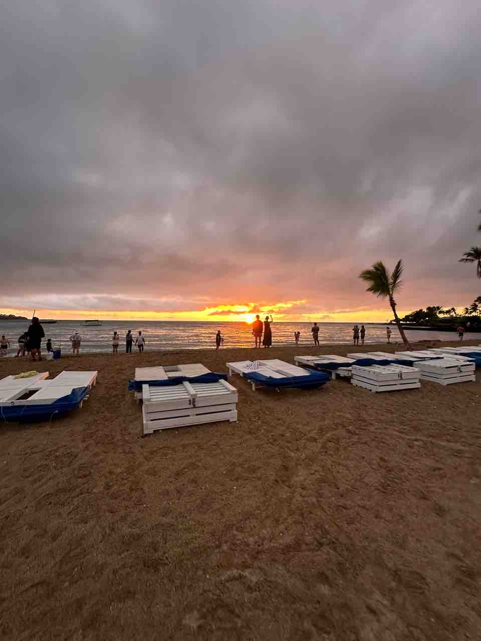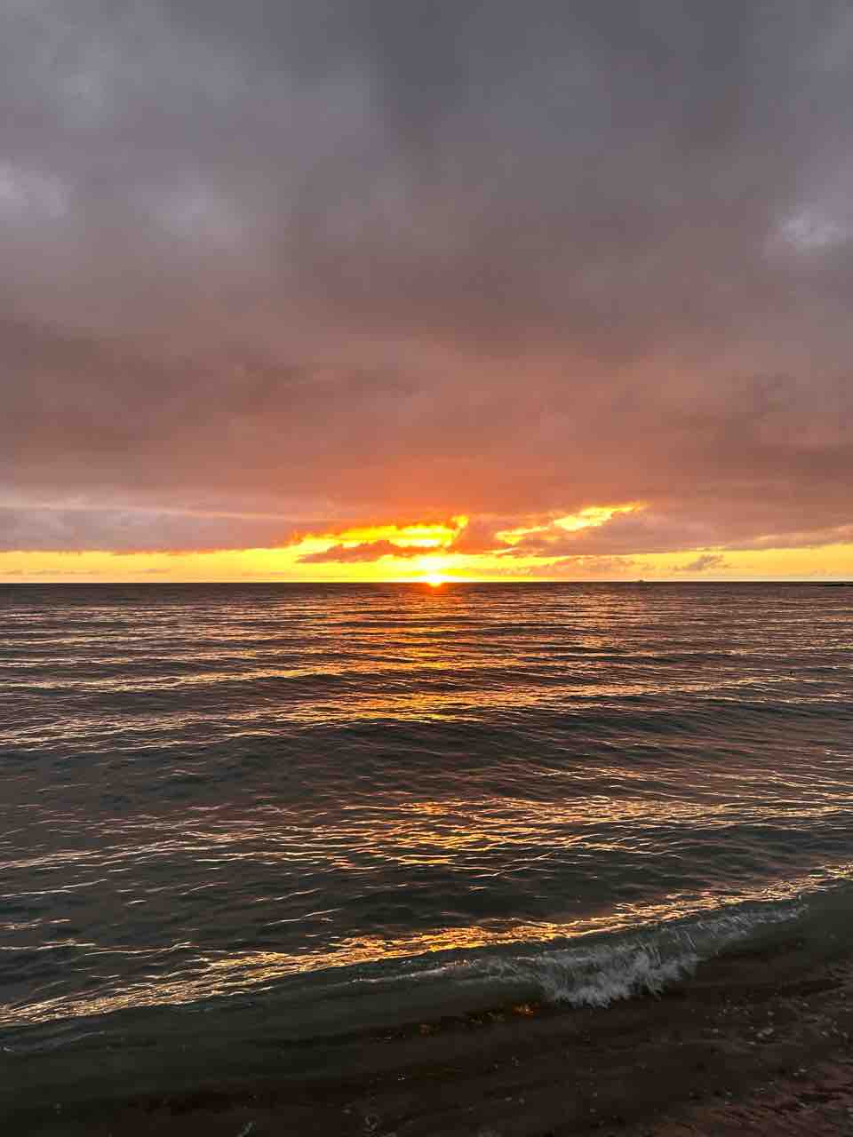 雲がたくさん出てたけれど、ちょうど海面のところだけ雲がなくてサンセットが見れてよかった〜!