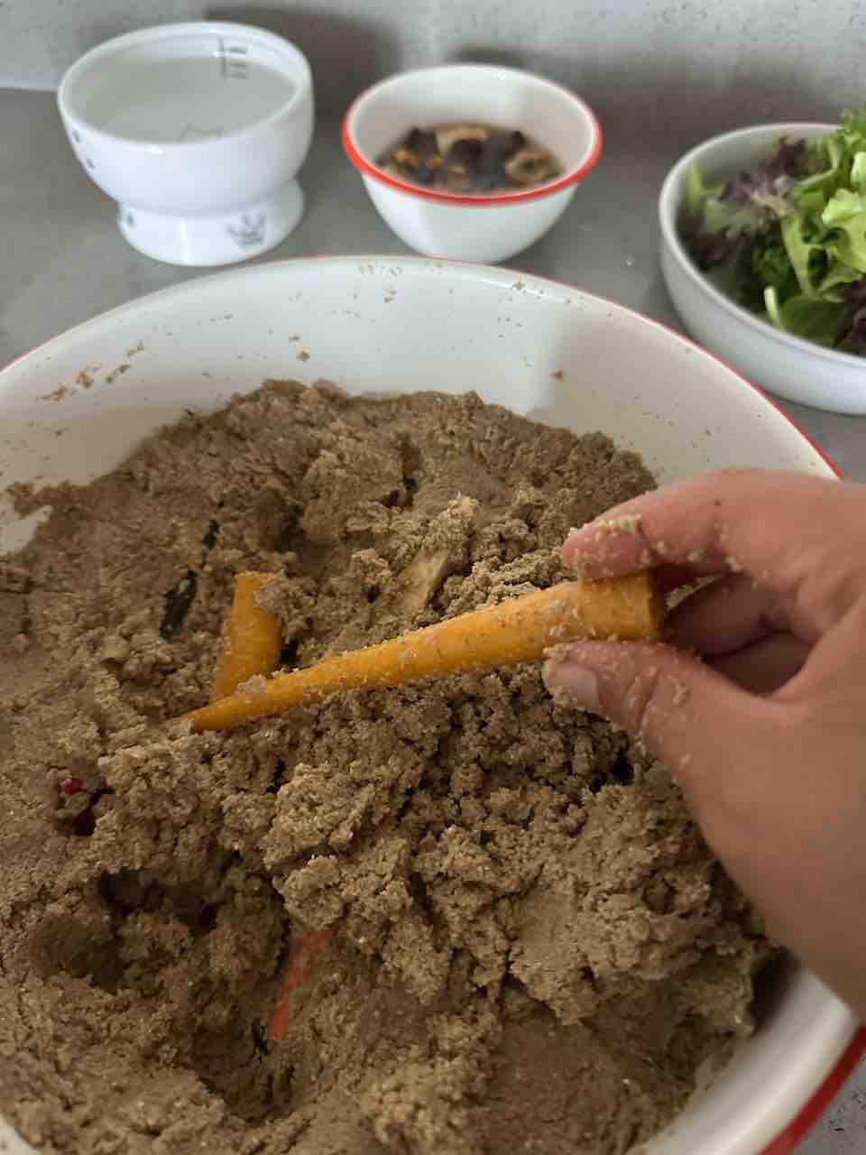 とりあえず腹ペコすぎたので糠漬けをバリバリ食べつつ料理。