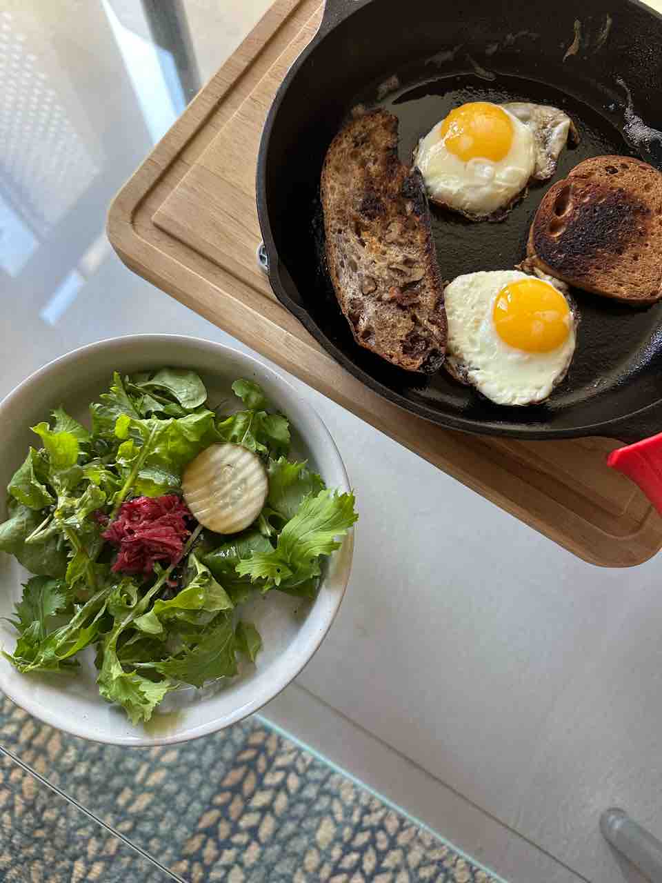 朝は卵と、Wallflourのパンと、グルテンフリーパンにサラダ〜!
