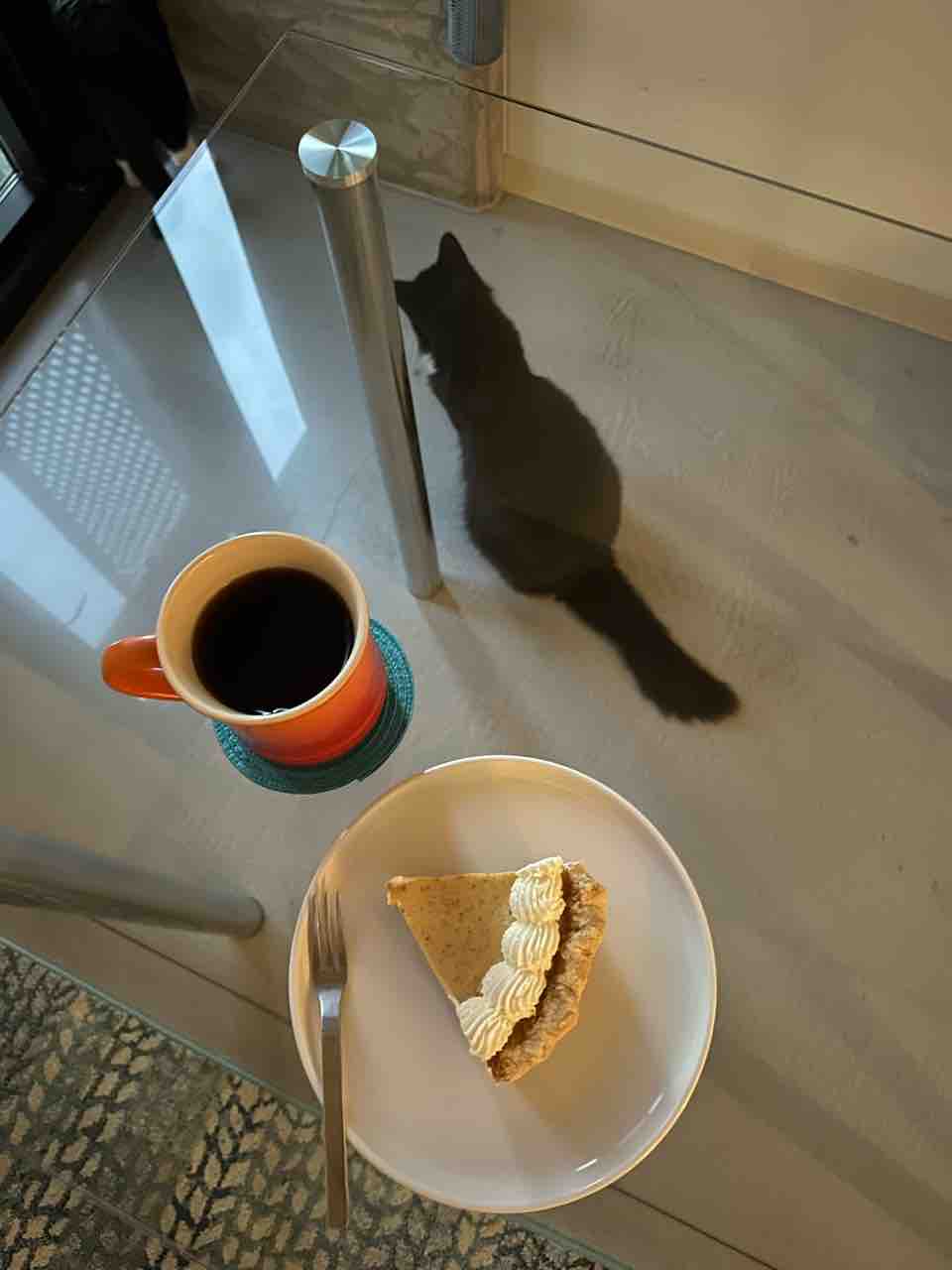 朝はシュガーリナのパンプキンカスタードパイと紅茶。