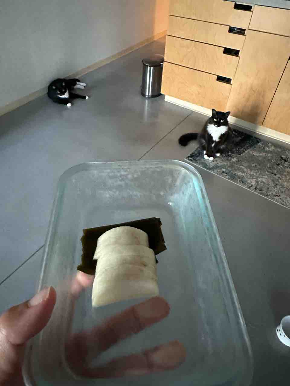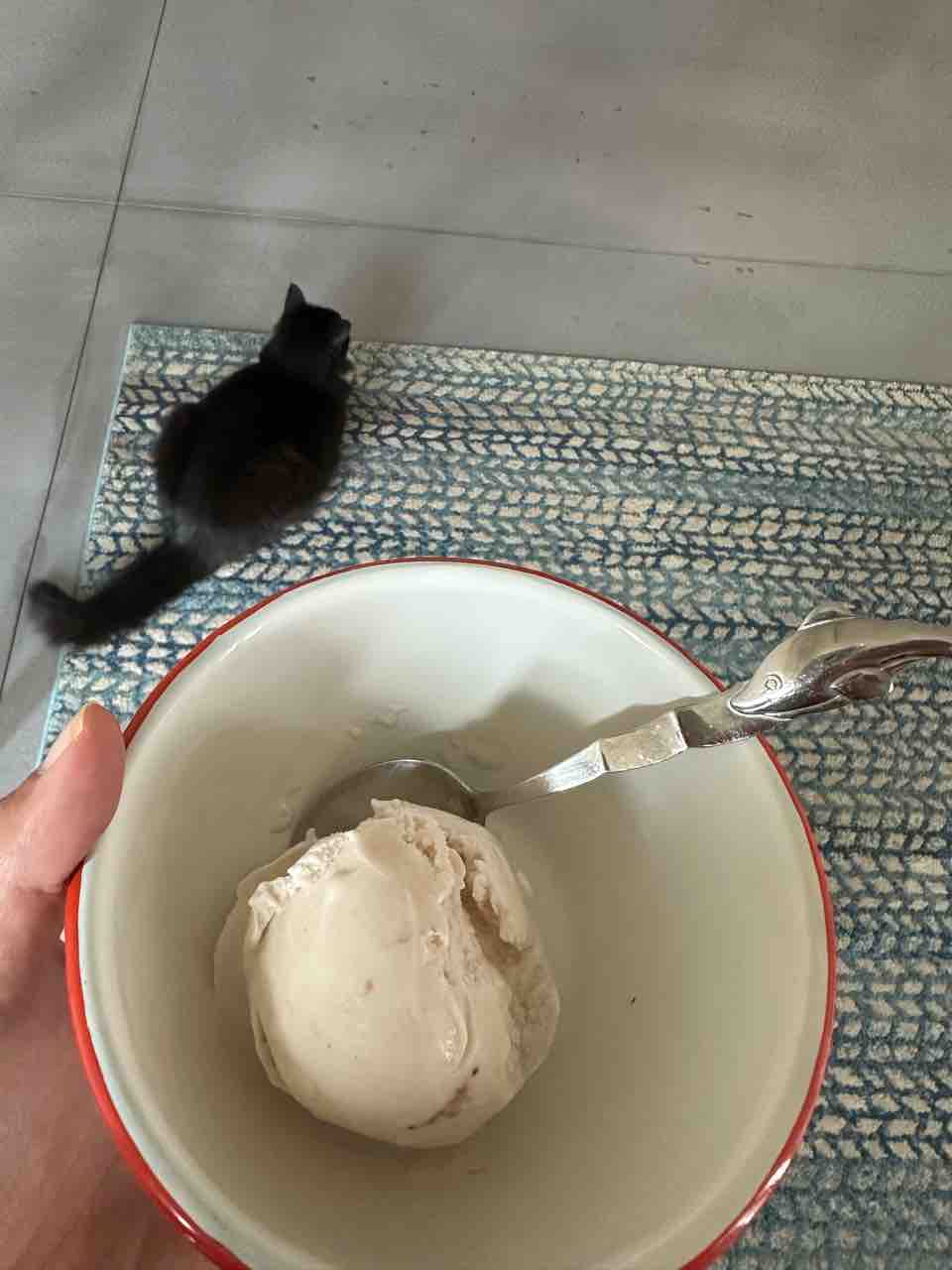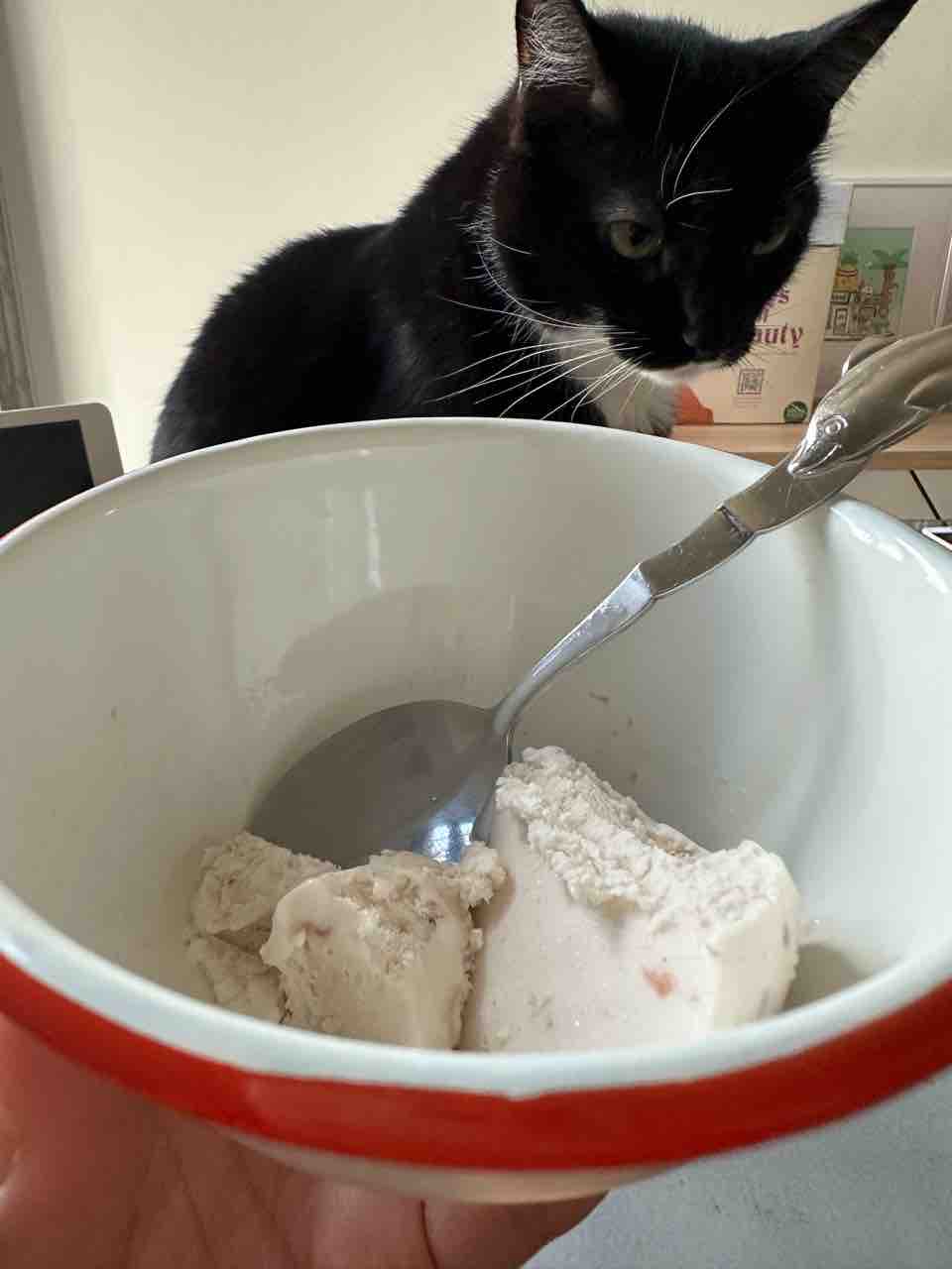 目を逸らしながら、「僕アイスに興味ありません」と演技しながら近付いてくるタマ様。