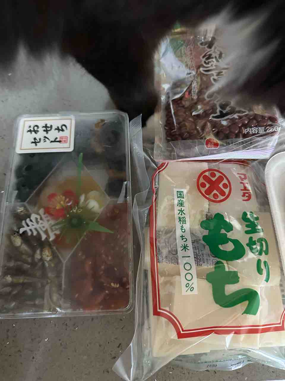 お正月用は小豆と、お餅、おせちセット。