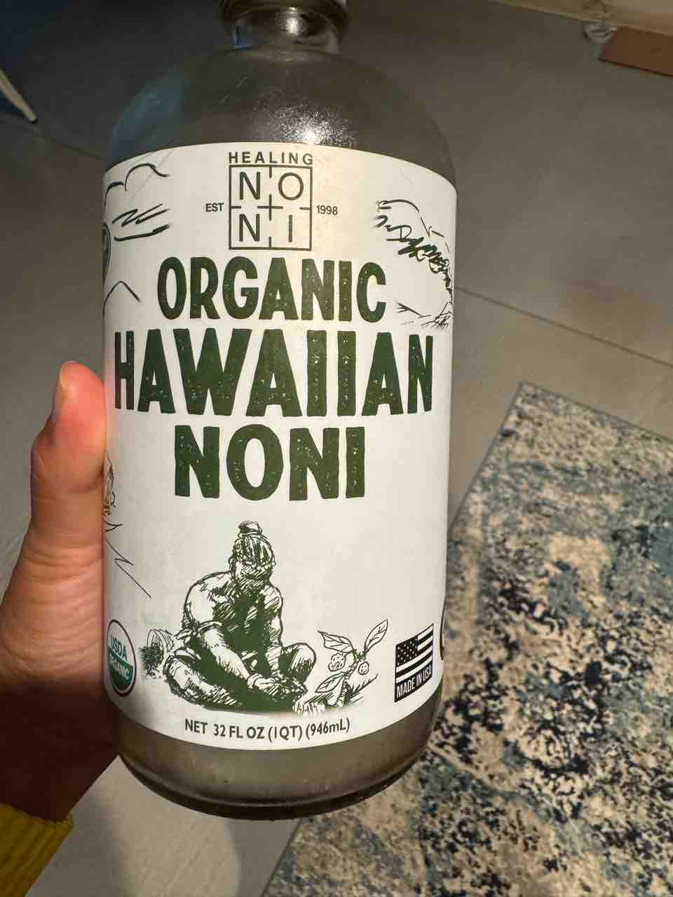 まずはノニジュース。最後の一口!空になってしまった〜