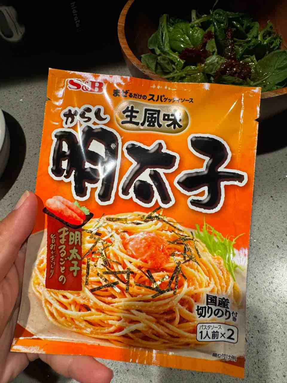 夜ご飯は日本で買った明太子パスタ。