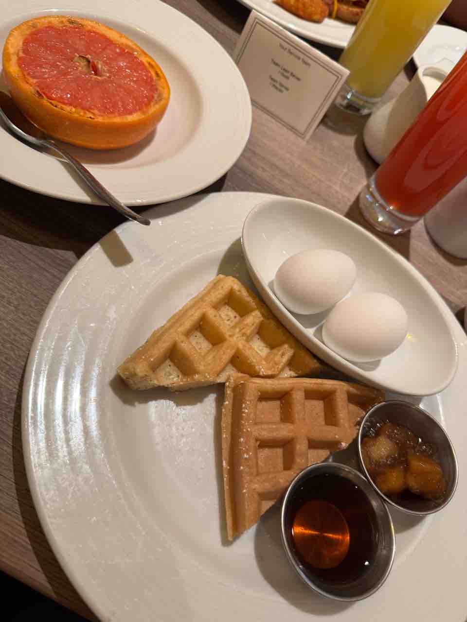 私はグレープフルーツとゆで卵とワッフル!