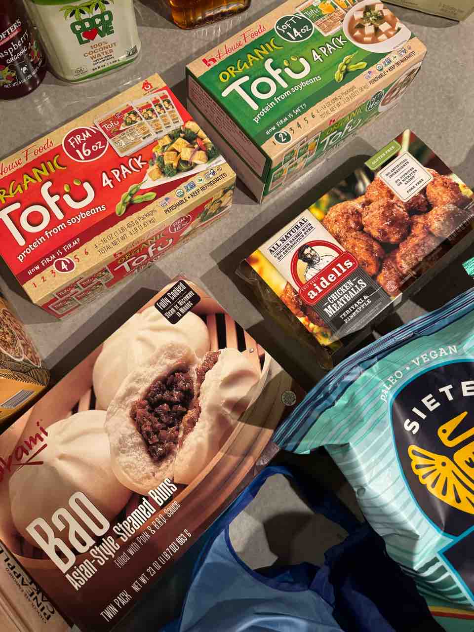 それからお豆腐2種類と(アメリカの豆腐は賞味期限長いので)