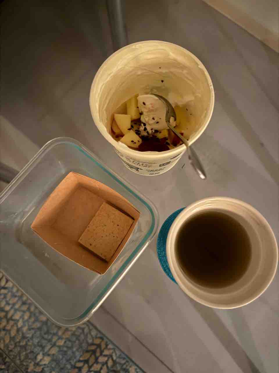 緑茶と、ヨーグルトと、クラッカー。