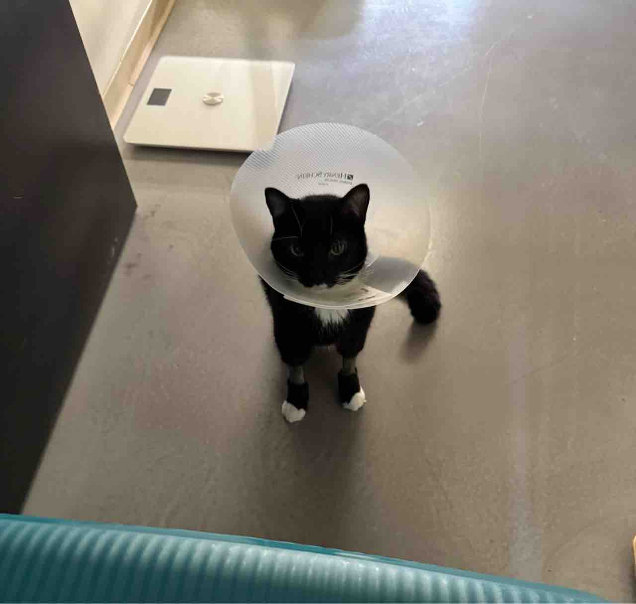 たま様、手術患部のホチキスが外れそうな部分があるので病院へ。