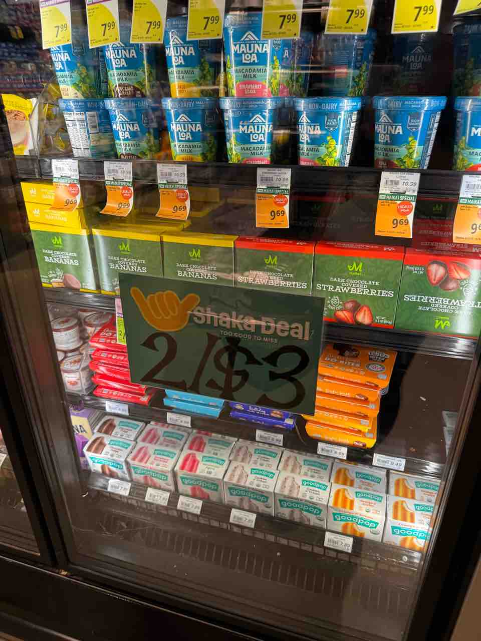 あと冷凍のイチゴとバナナのチョコがけのやつもすごく安くなってたので購入。2個で3ドル。