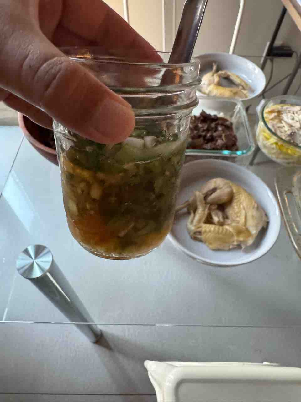 チキンには味はつけてないので、このタレをかけて食べます。