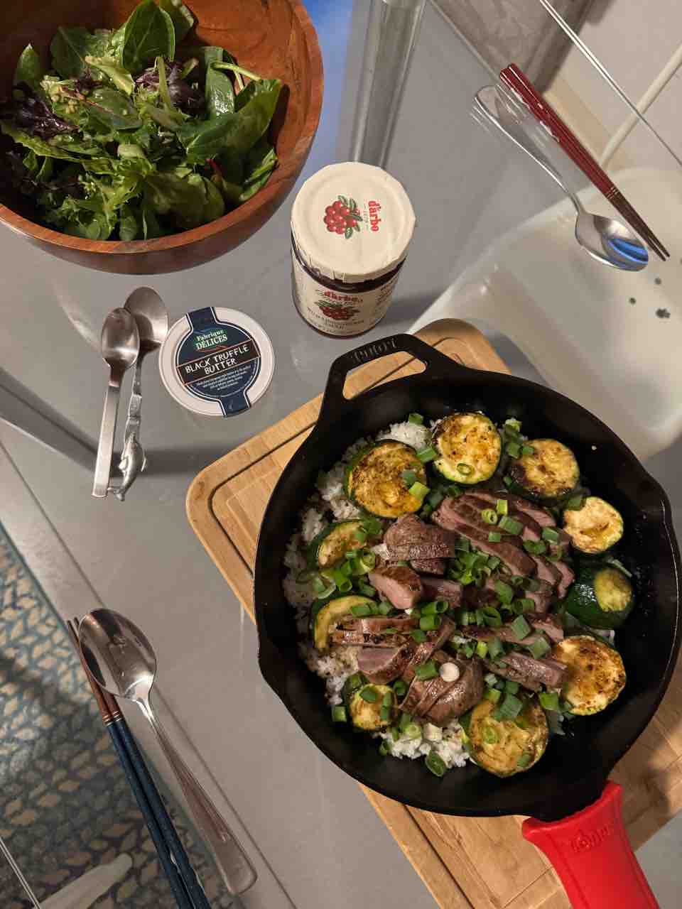 鹿肉に、トリュフバターをつけたり、リンゴンベリーのソースをつけたりするとうまうまよ。