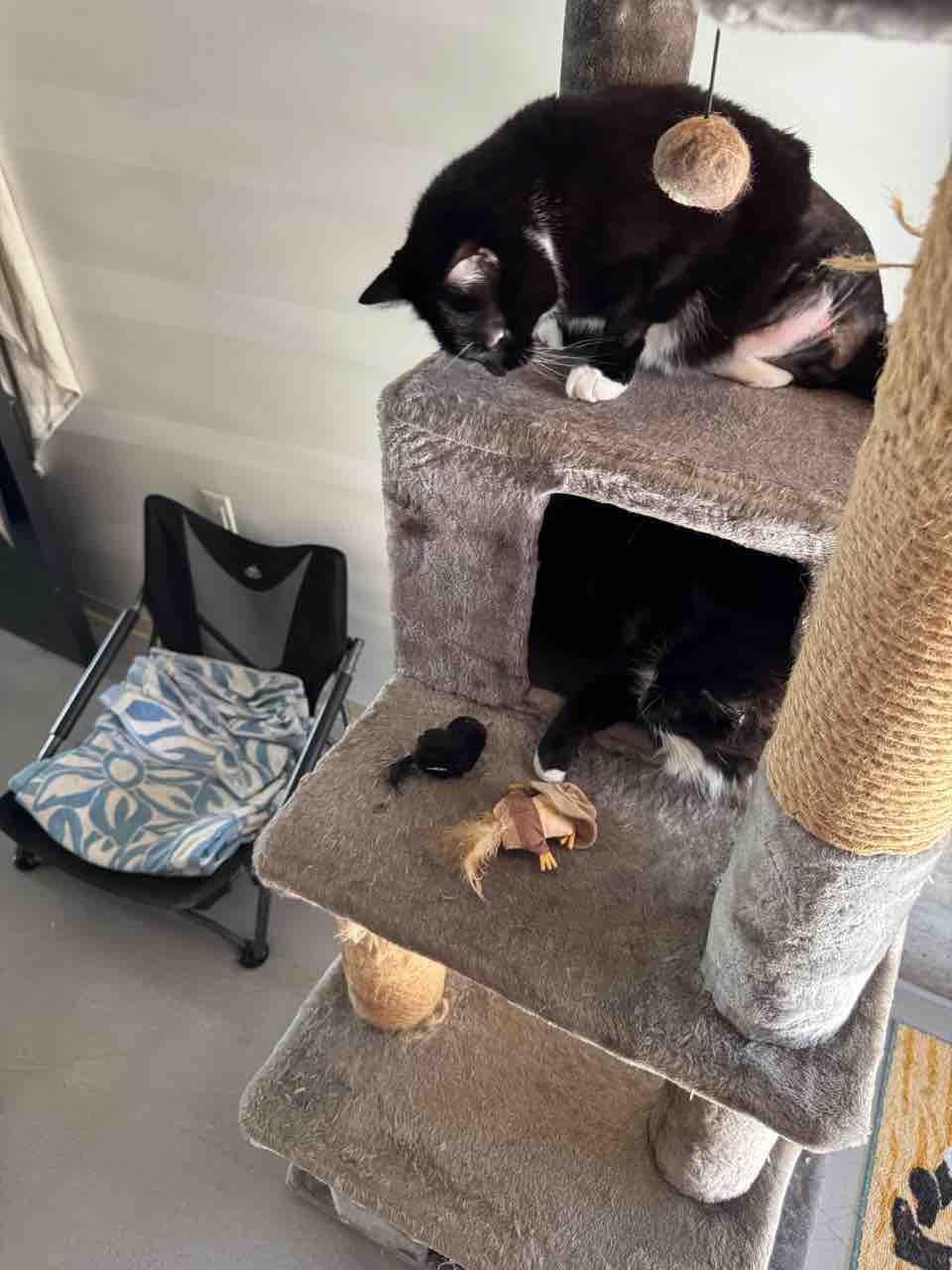 キッチンカウンターみたいな大きな段差はジャンプできないけれども、キャットツリーみたいなのは登れている、タマ様。