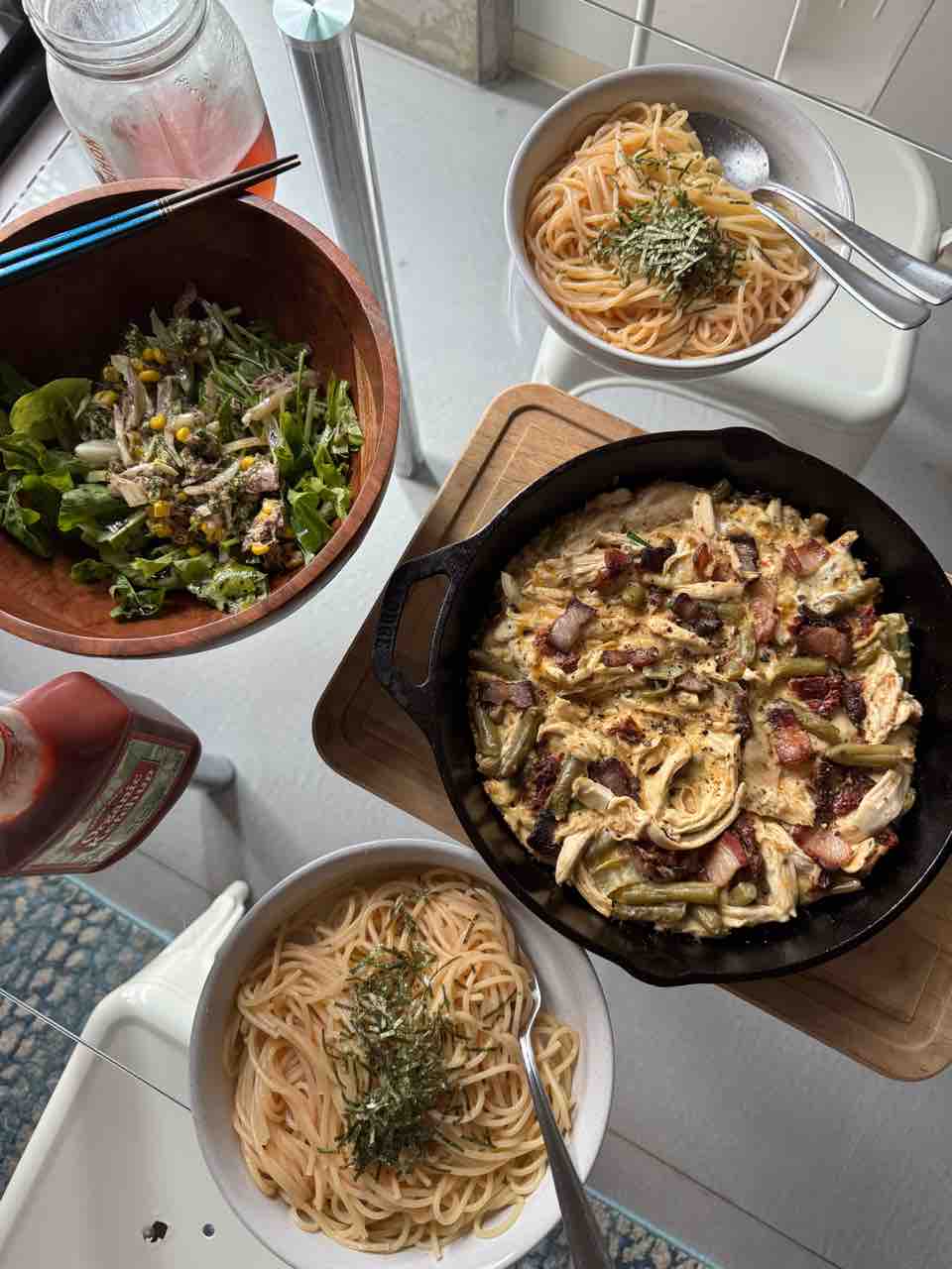 ディナーはたらこパスタと、サラダ。