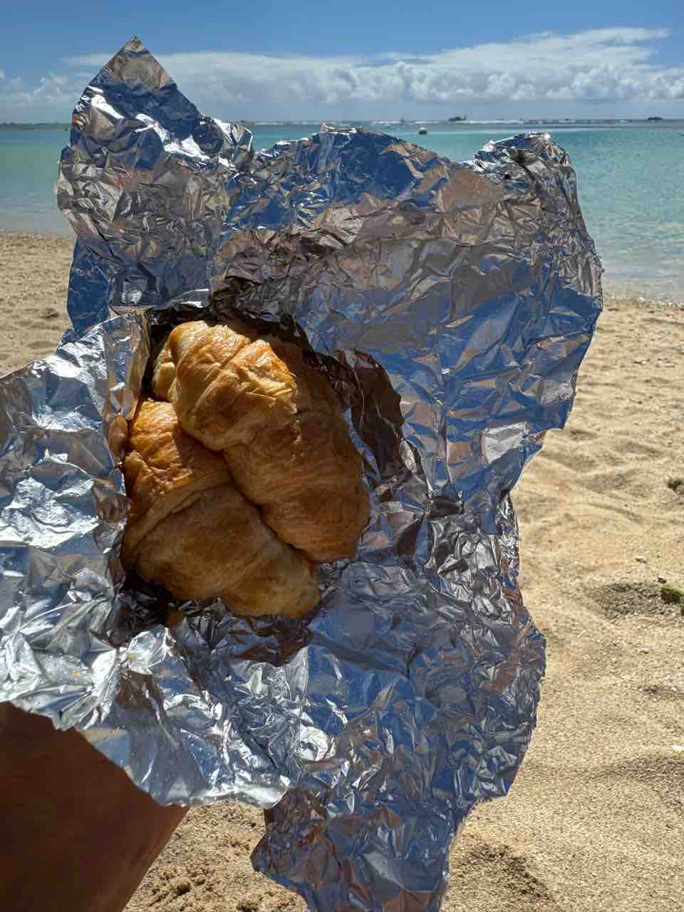 チョコを挟んだチョコクロワッサンでランチ。