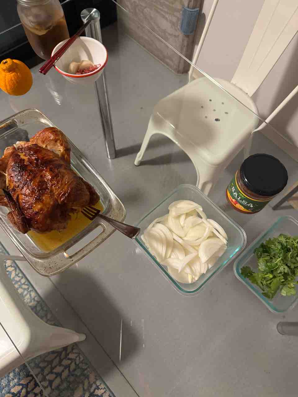 ロティサリーチキンを載せたタコスにしました。うまうま。