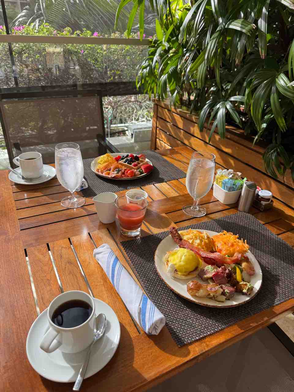 ようやく起きてきた夫と朝食ビュッフェ〜!