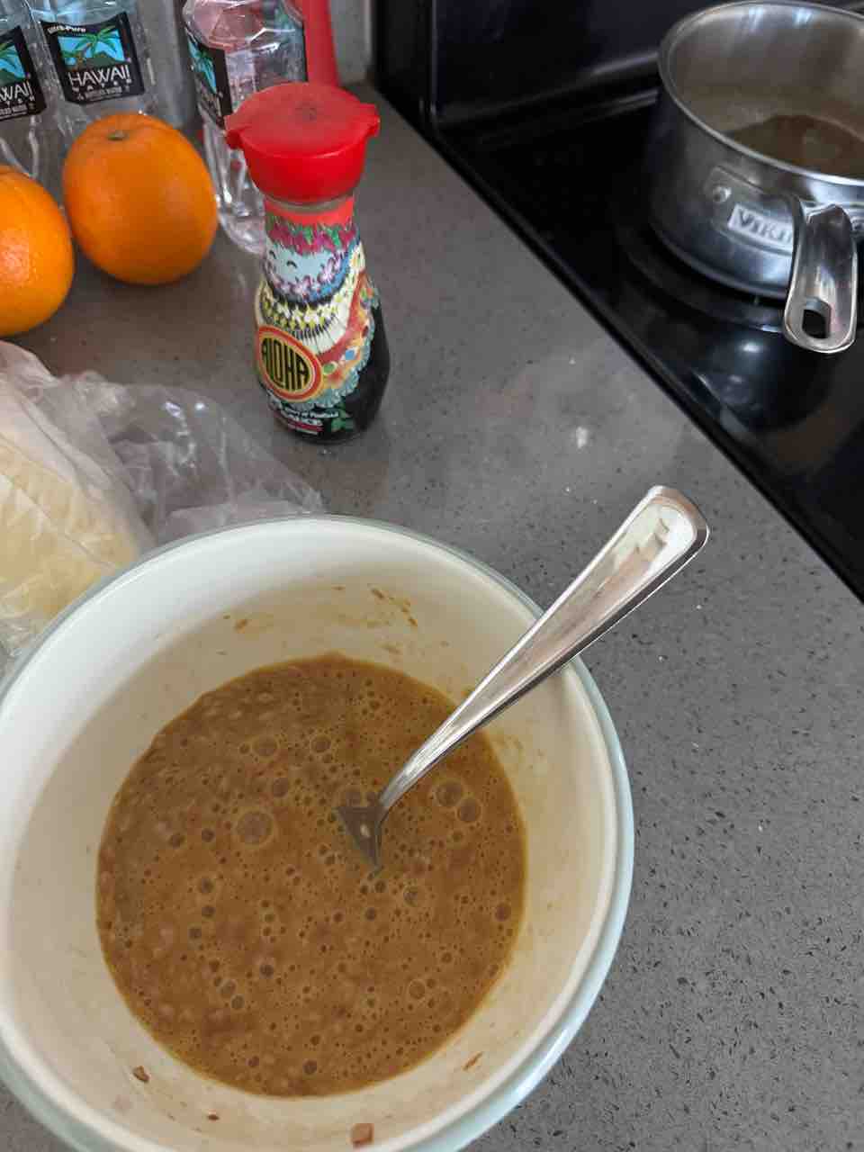茶碗蒸しは、挽肉と醤油と卵を混ぜて、熱々だし汁をたっぷり注いで蒸しました。