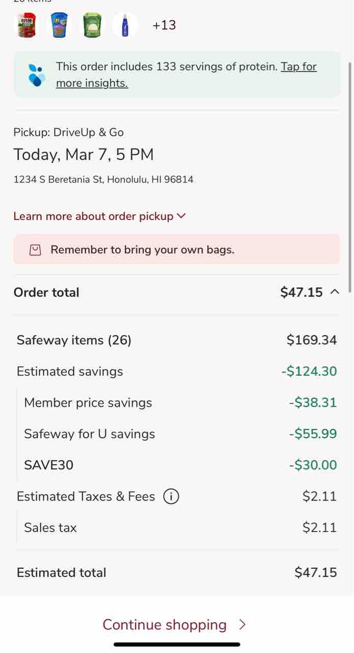 昨日のセーフウェイのオンラインオーダの戦利品を!