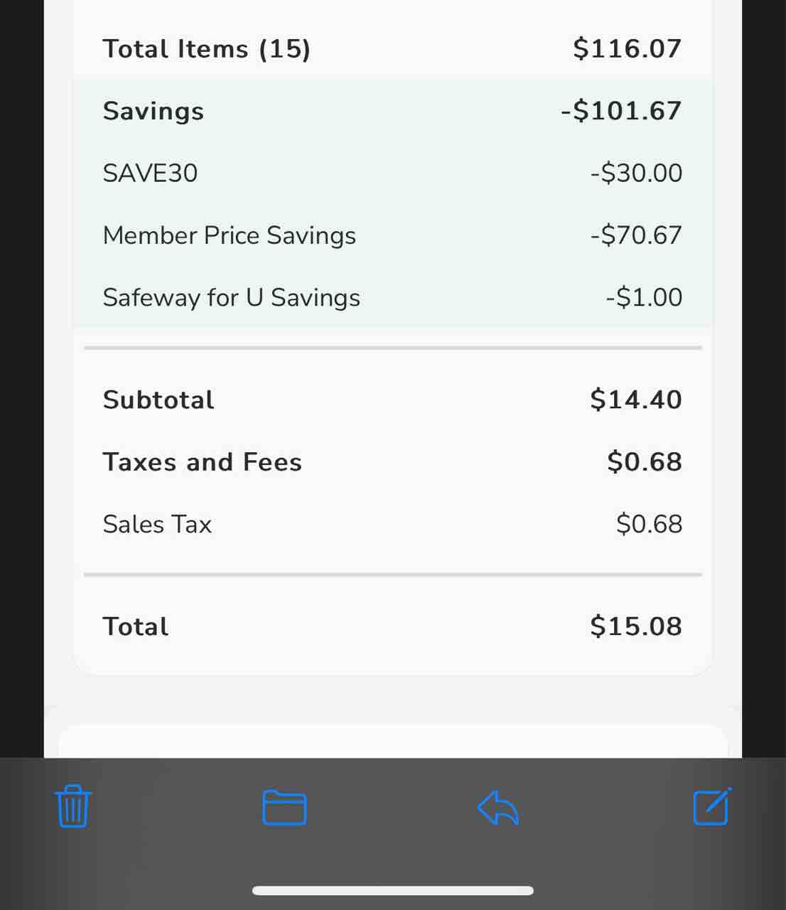 〇〇ドル以上使ったら〇〇ドルオフ、みたいなクーポンをいくつか使ってたので、