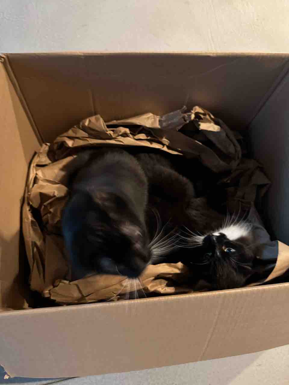 足が1本無くなってしまったので、小さい箱にも入れるようになりました🥹