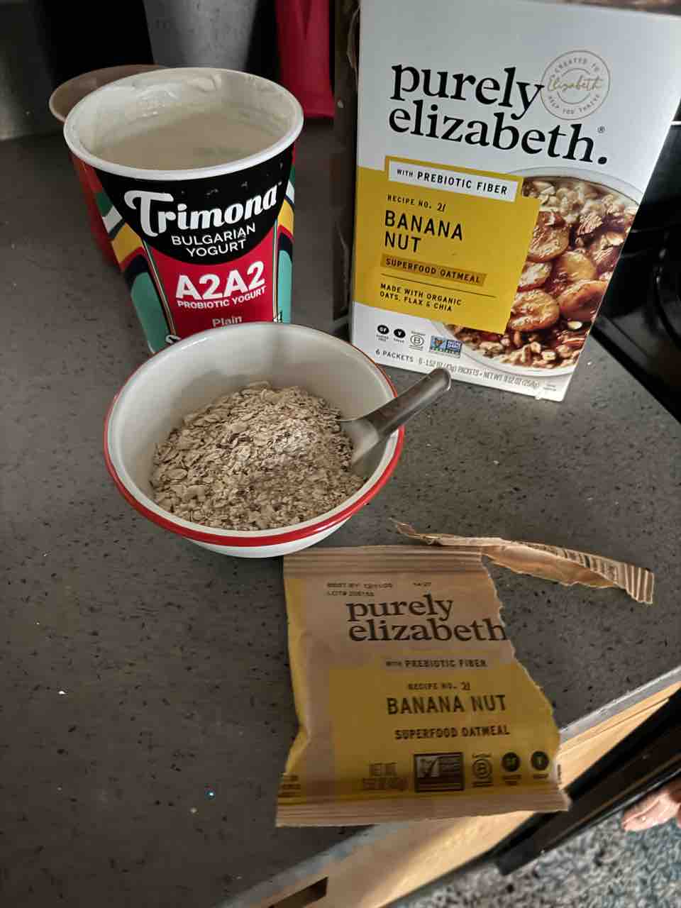 昨日の朝ごはんは、最近ハマってるブランド、Purely Elizabethのオートミール!