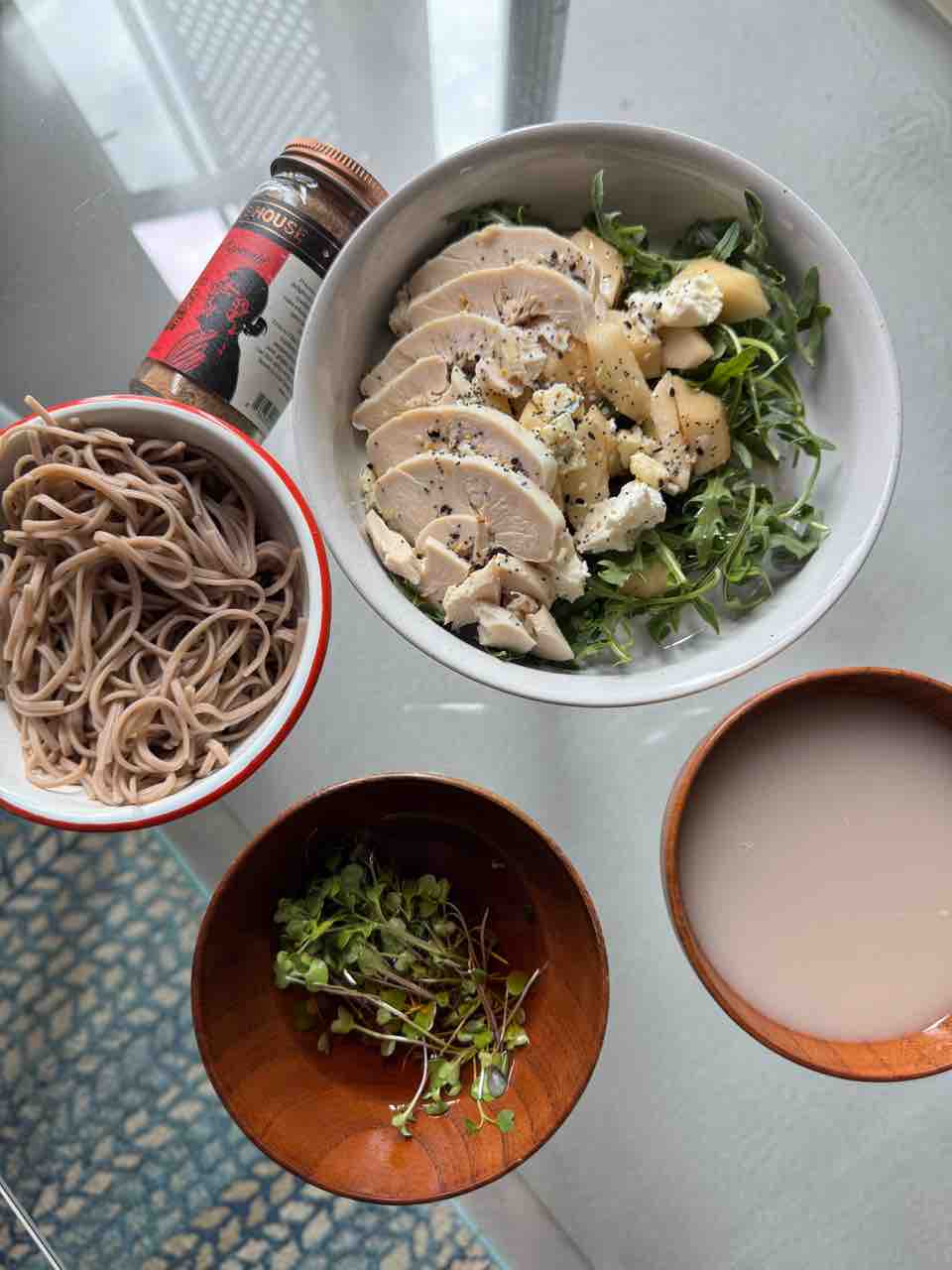 サラダはアルグラに、洋梨、サラダチキン、ゴートチーズ、ブルーチーズ!
