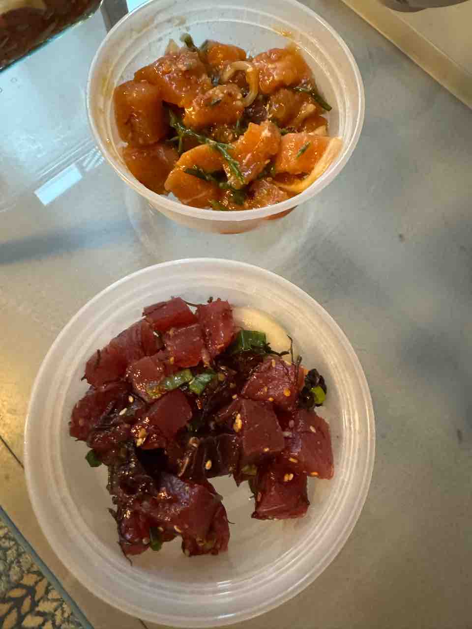 ニコスのポケ屋さんで、アウ(メカジキ)とアク(鰹)のポケをゲット。
