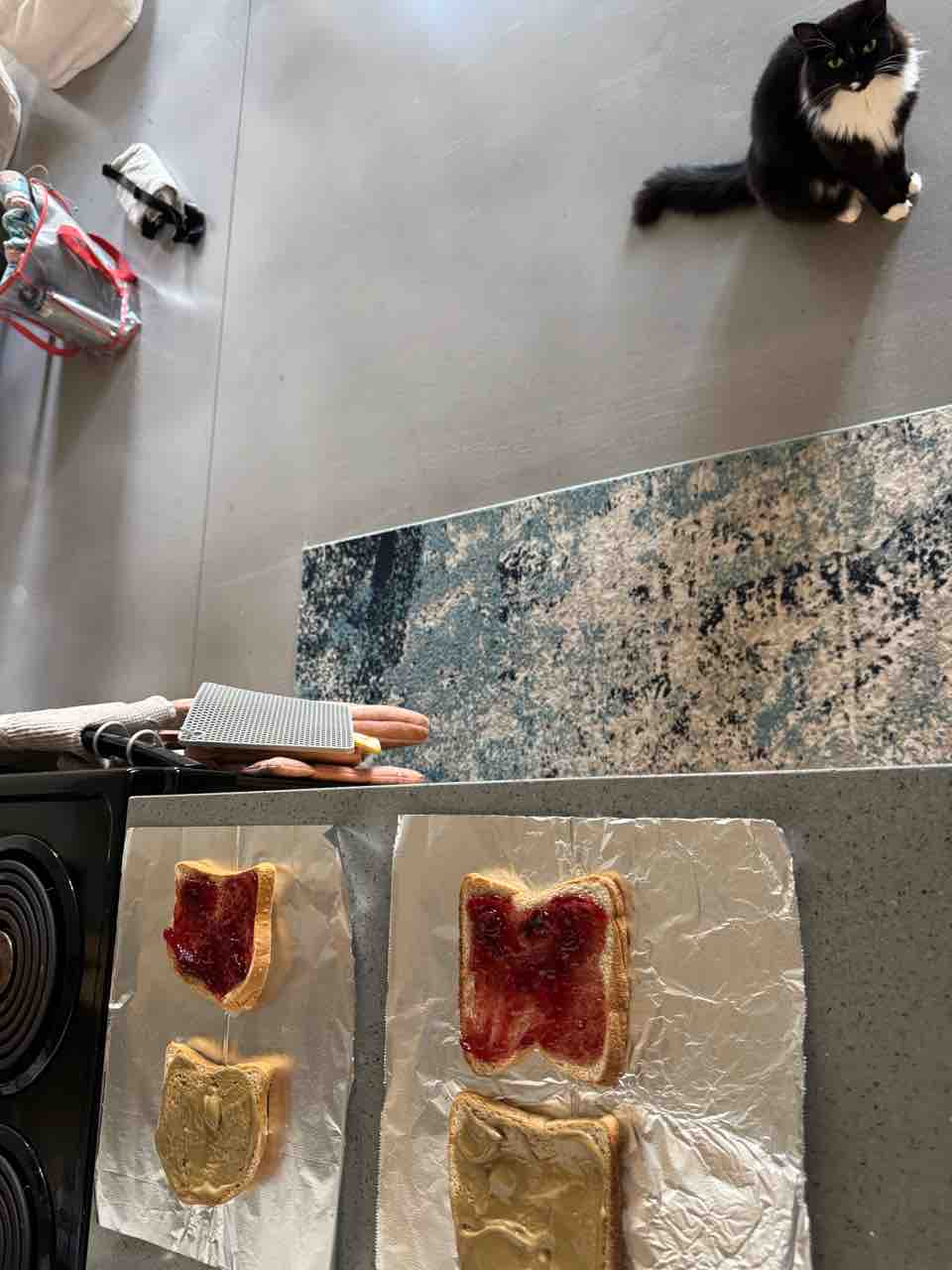夫のパンは普通のパンで、私のは高タンパク質のグルテンフリーのやつです✌️