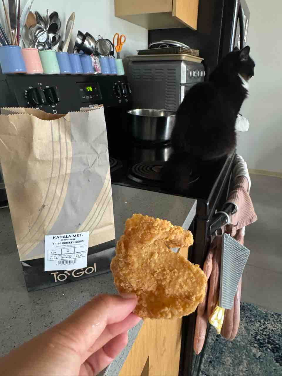 カハラマーケットで手に入れたチキンスキンをつまみ食い。