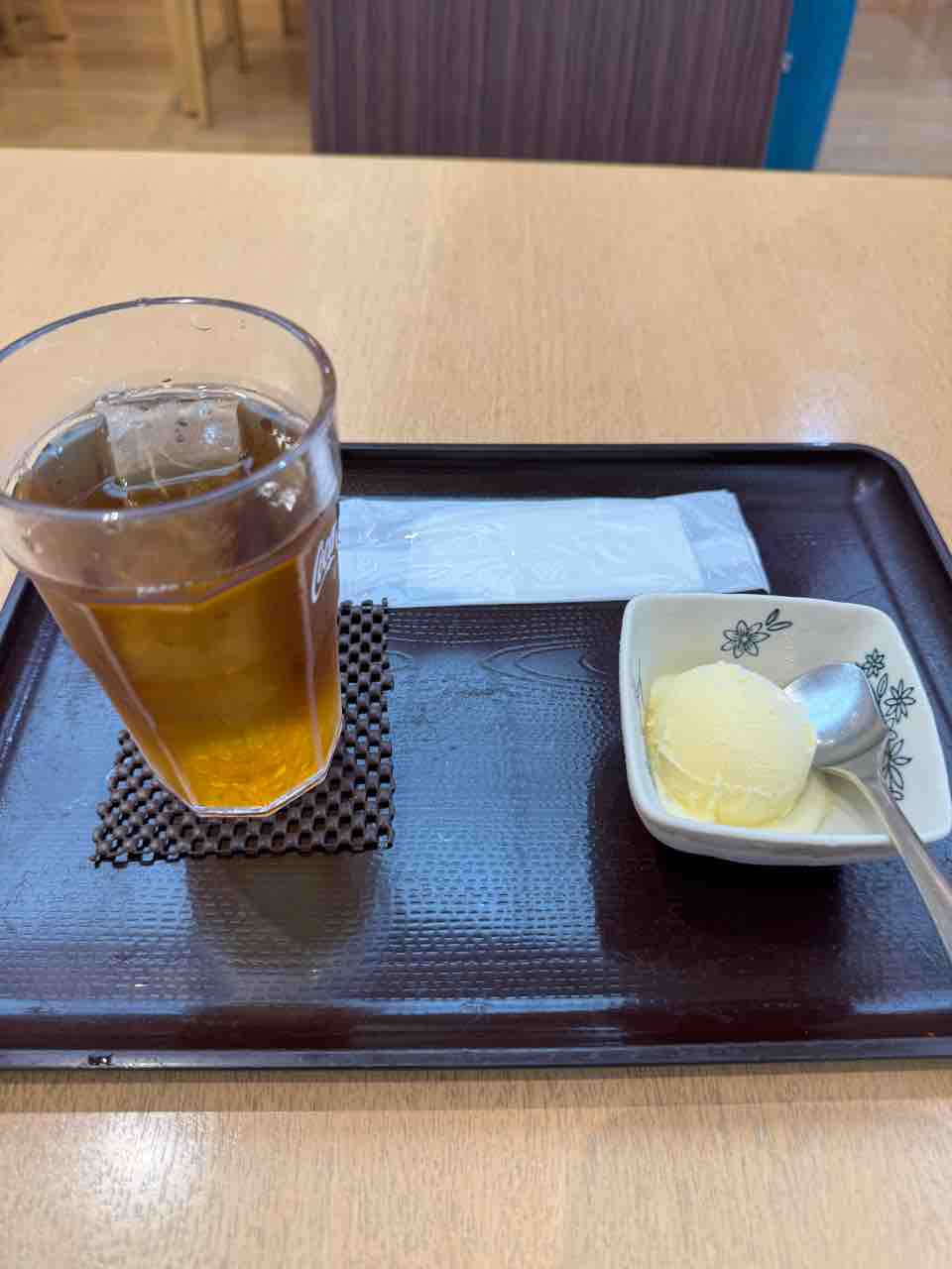 わたしは食事はいらないのでアイスとお茶だけ。