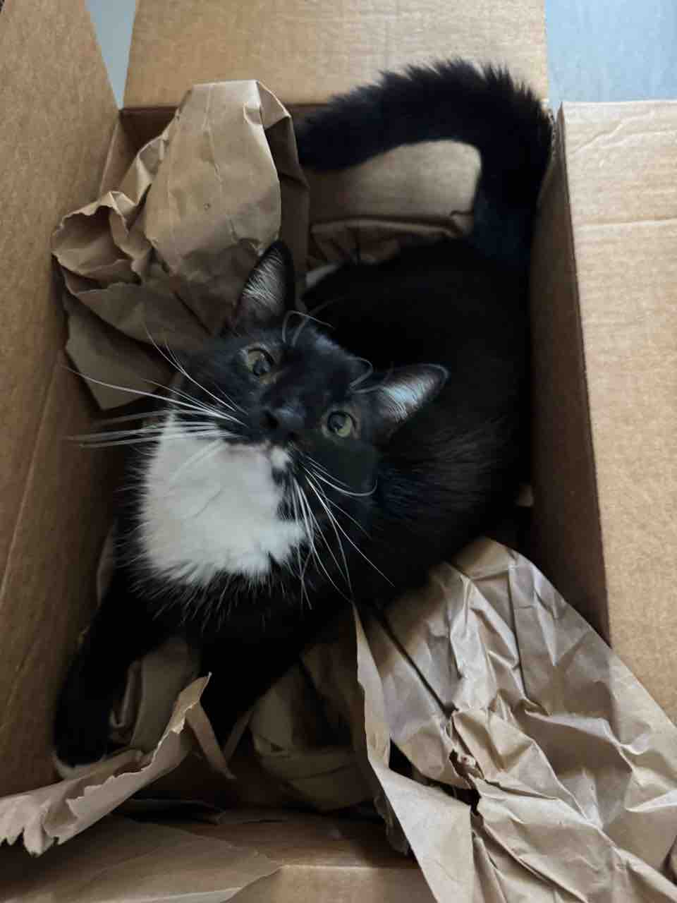 友達にもらったどら焼きの入っていた袋に頭を突っ込み、抜けなくなっていたタマ様。