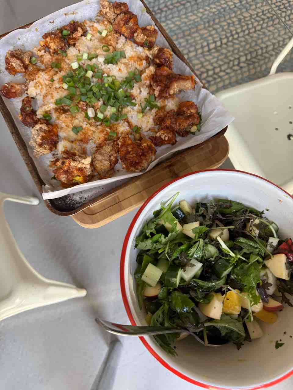 ランチはサラダと豆ご飯と、茶碗蒸し。