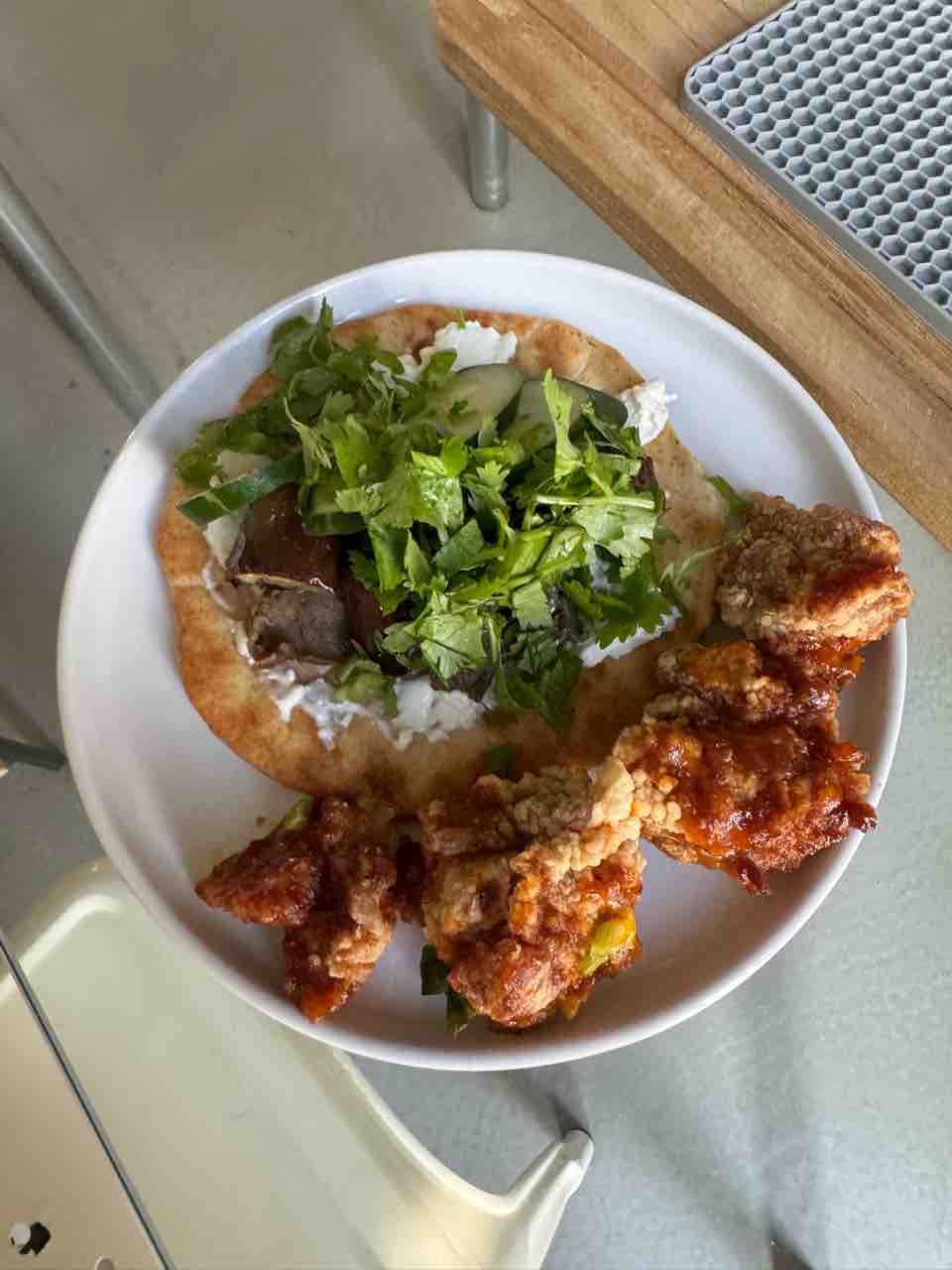 ディナーはフードランドのカラオケボウル(唐揚げ丼)を家でエアフライしたやつと