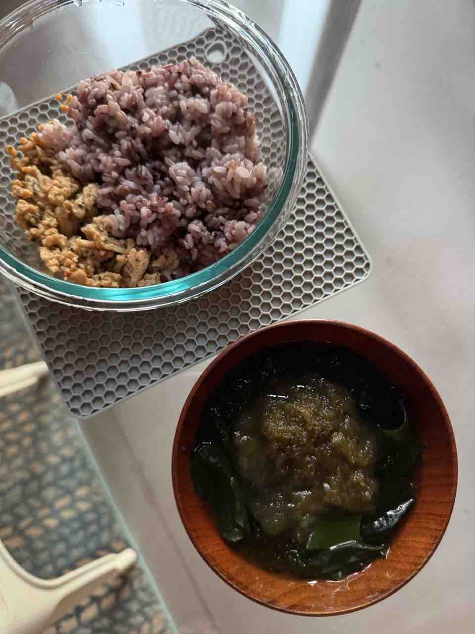 朝は雑穀米と鶏ひき肉のチキンガパオ。